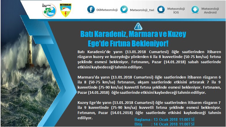 Главное управление метеорологии Турции (MGM) опубликовало предупреждение для западного черноморского и северного Эгейского побережья, а также региона Мраморного моря, куда входит Стамбул.